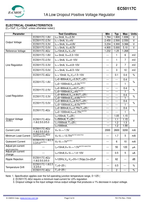 EC50117C 1A Low Dropout Positive Voltage Regulator