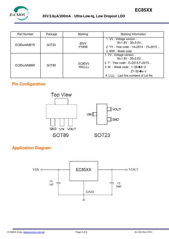 The EC85XX operates from an input voltage of VOUT+1V to 35V, consumes only 2.