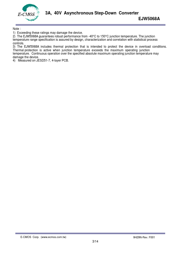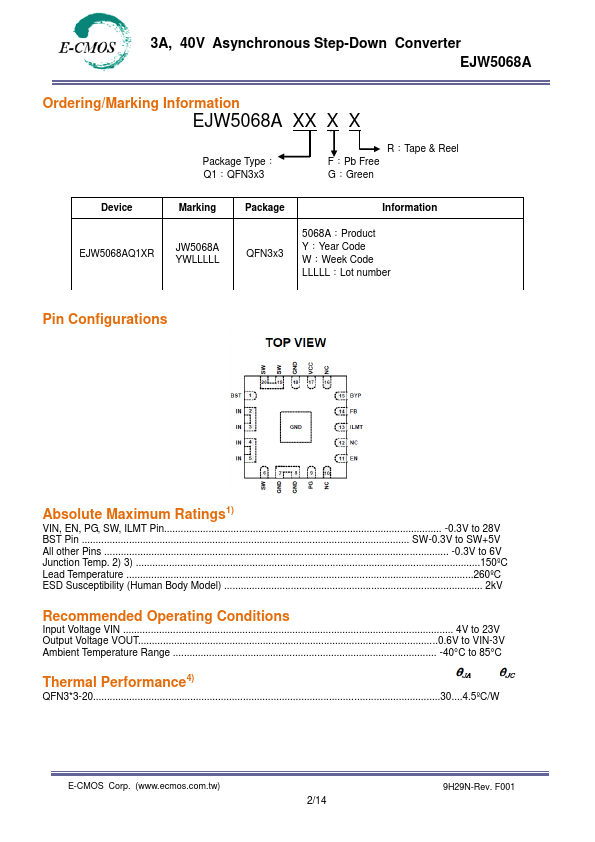 The EJW5068A is a monolithic buck switching regulator based on I2 architecture for fast transient response.