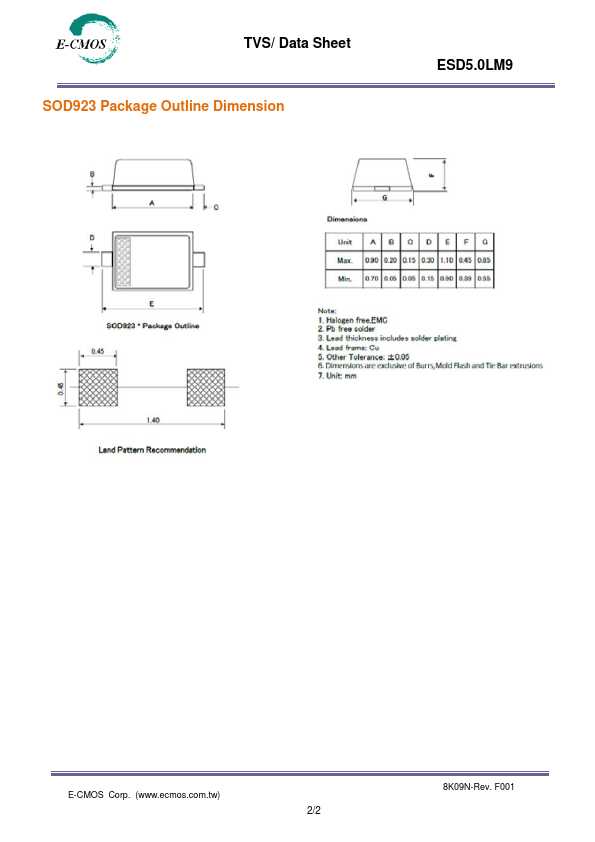 Datasheet Details Part number ESD5.0LM9 Manufacturer E-CMOS File Size 315.93 KB Description TVS Datasheet ESD5.0LM9 Datasheet Additional preview pages of the ESD5.0LM9 datasheet.
