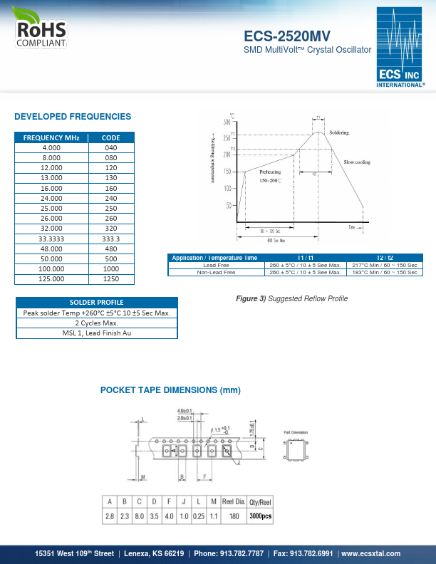 • 2.5 x 2.0 mm Footprint • Extended Temp Range • RoHS Compliant • Wide Supply Voltage • Low Jitter • Compatible with 1.8V, 2.5V