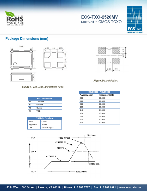 • HCMOS TCXO • 2.5 x 2.0 mm Footprint • PbFree/RoHS Compliant • MSL 1 • Lead Finish Au • MultiVolt™ Compatible with