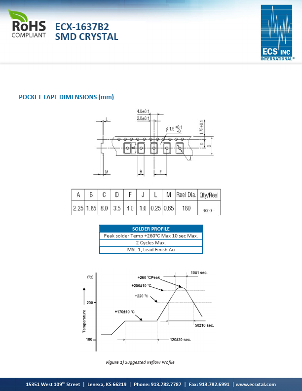The sub miniature ECX-1637B2 is a very compact SMD Crystal. The 2.0 x 1.6 x 0.45 mm ceramic package is ideal for wireless applications.
