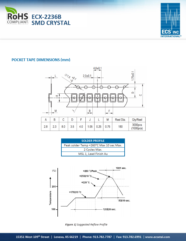 The miniature ECX-2236B is a compact SMD Crystal that offers low aging of ±1 ppm first year. The industry standard 2.5 x 2.0 x 0.55 mm ceramic package is ideal for wireless applications.