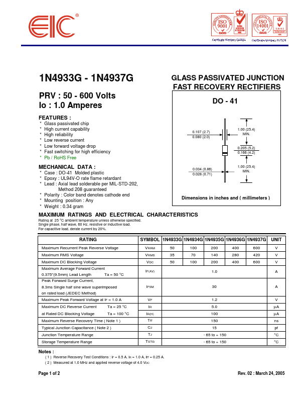 1N4937G Datasheet | EIC Semiconductor