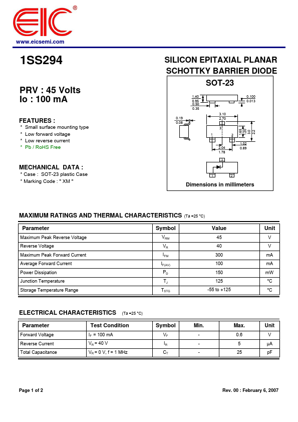 .eicsemi. 1SS294 PRV : 45 Volts Io : 100.