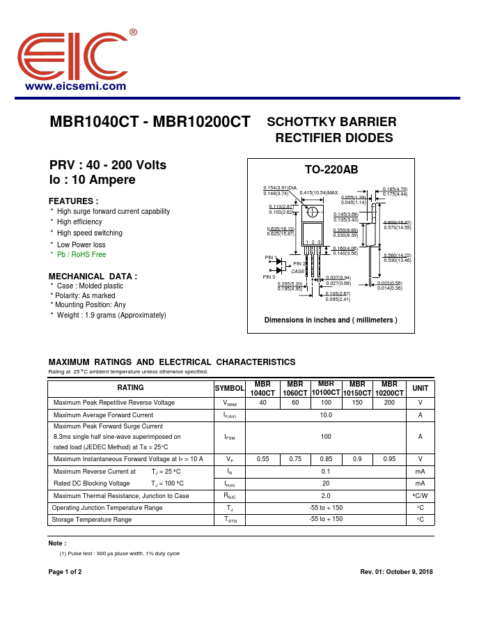 | Datasheet | MBR10100CT MBR1040CT Datasheet (PDF) |