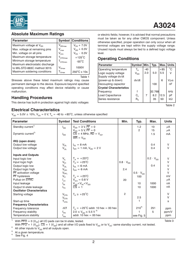 Overview: EM MICROELECTRONIC-MARIN SA A3024 Very Low Power 8-Bit 32 kHz RTC with Digital Trimming, User RAM and High Level.