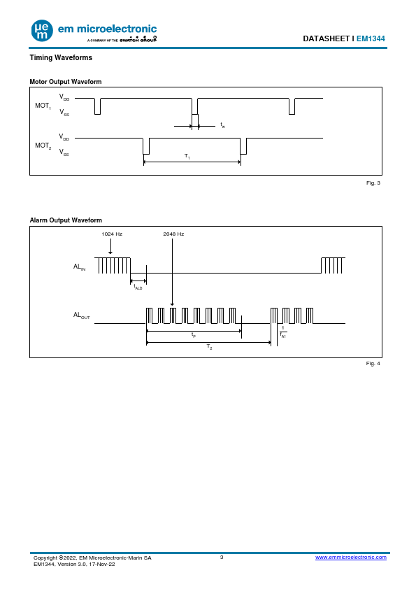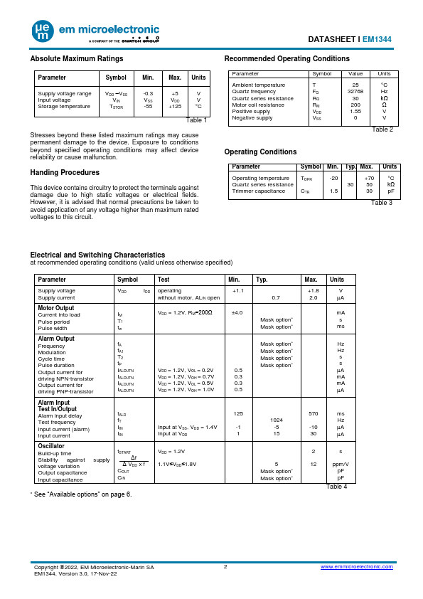 Overview: DATASHEET Ɩ EM1344 CMOS Circuit for Analog Quartz Clocks with Bipolar Stepping Motor.