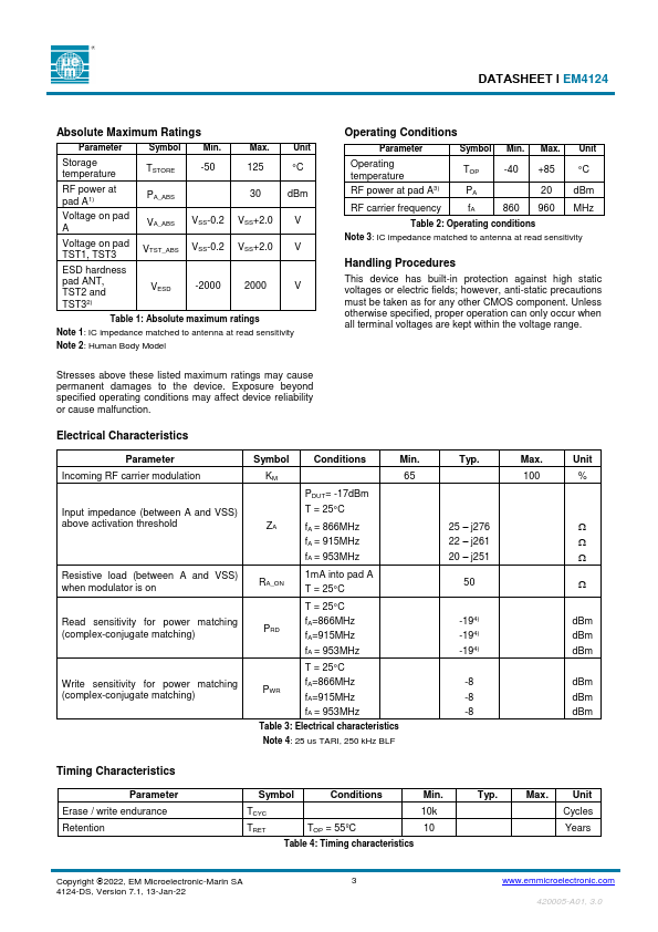 DATASHEET Ɩ EM4124
