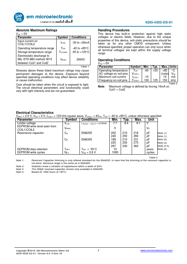 | Manufacturer | EM Microelectronic (Swatch Group) |