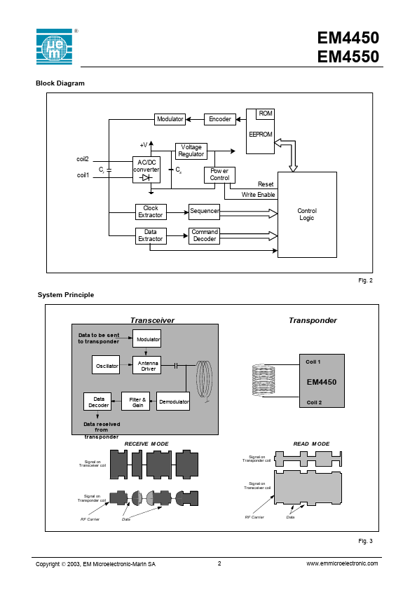 The EM4450/4550 is a CMOS integrated circuit intended for use in electronic Read/Write RF Transponders.
