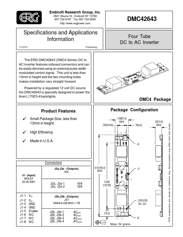 Powered by a regulated 12 volt DC source the DMC42643 is specially designed to power the Acer L170E3-4 backlights.