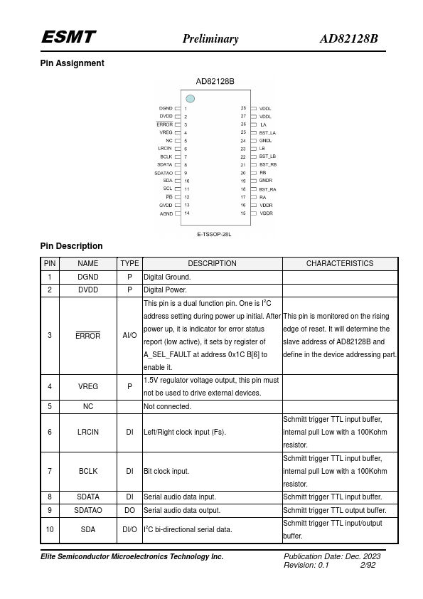 - 16/18/20/24-bits input with I2S, Left-alignment, Right-alignment and TDM data format