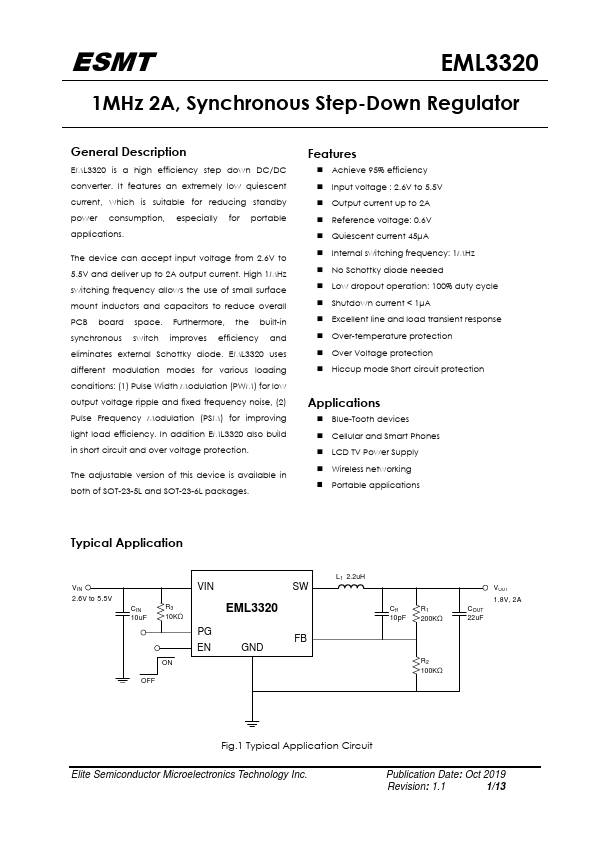 | EML3290 | 1.5MHz Synchronous Step-Down Converter |
