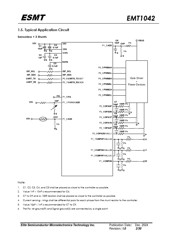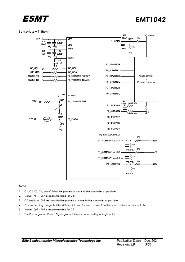 The EMT1042 integrates the 8051 core with peripheral circuits to perform sine-wave motor control. For rotor position detection, it can support sensorless motor or Hall latch IC input. In addition, system level peripheral functions, such as ADC, OPAMP, parator, munication interface, SVPWM, watchdog timer, current sensing, undervoltage-lockout (UVLO), over current protection (OCP) and locked-rotor protection are...