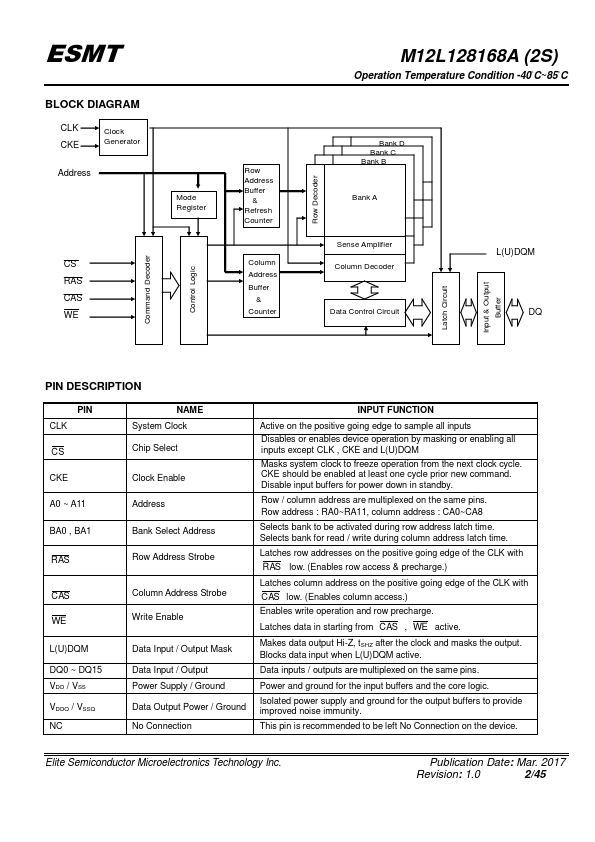 The M12L128168A is 134,217,728 bits synchronous high data rate Dynamic RAM organized as 4 x 2,097,152 words by 16 bits. Synchronous design allows precise cycle control with the use of system clock I/O transactions are possible on every clock cycle. Range of operating frequencies, programmable burst length and programmable latencies allow the same device to be useful for a variety of high bandwidth, high performance...