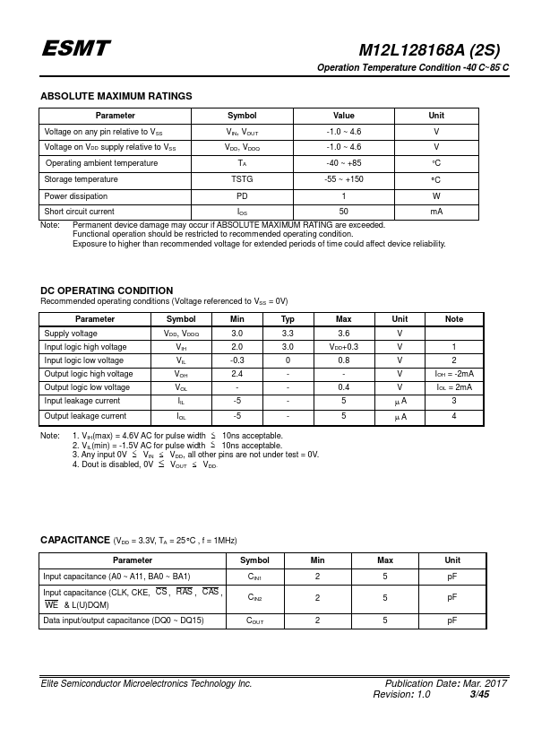 - JEDEC standard 3.3V power supply