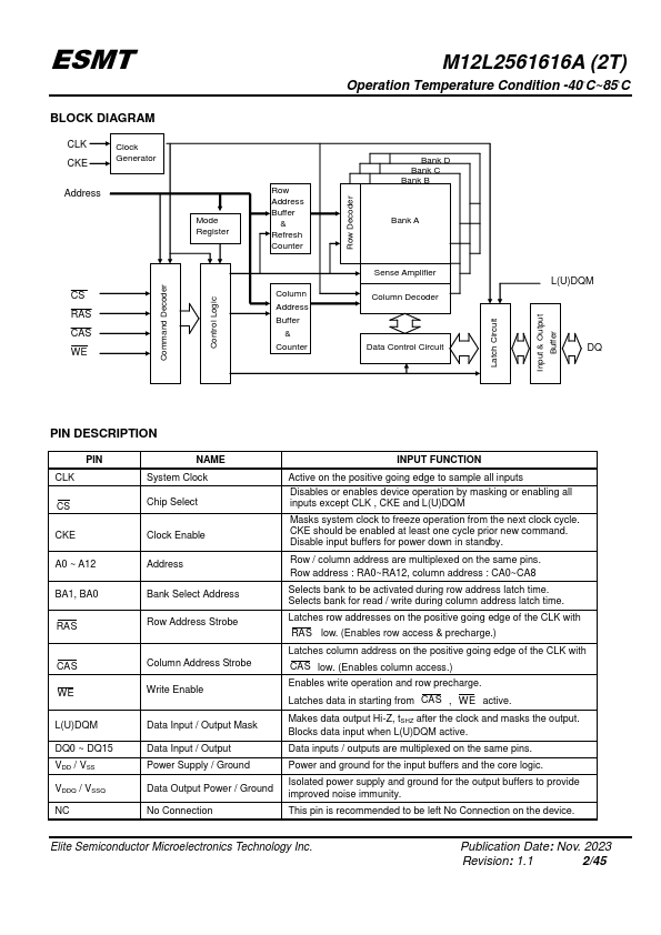 M12L2561616A-6BIG2T Key Features