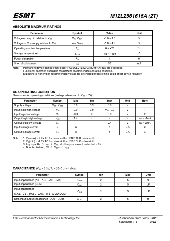 | Manufacturer | ESMT (Elite Semiconductor Microelectronics Technology) |