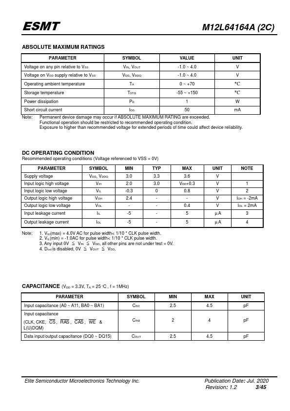The M12L64164A is 67,108,864 bits synchronous high data rate Dynamic RAM organized as 4 x 1,048,576 words by 16 bits.