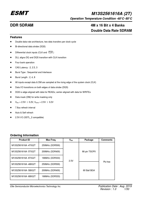 M13S2561616A-4BIG2T Key Features
