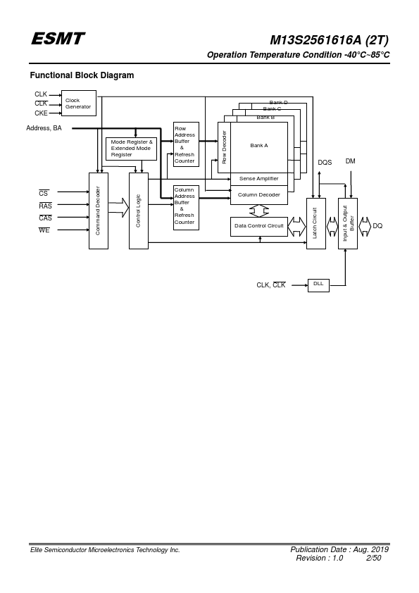Pin Name Function Pin Name Function A0~A12, BA0, BA1 Address inputs - Row address A0~A12 - Column address A0~A8 A10/AP: Bank selects (4 Banks) DM is an input mask signal for write data. LDM, UDM LDM corresponds to the data on DQ0~DQ7;.