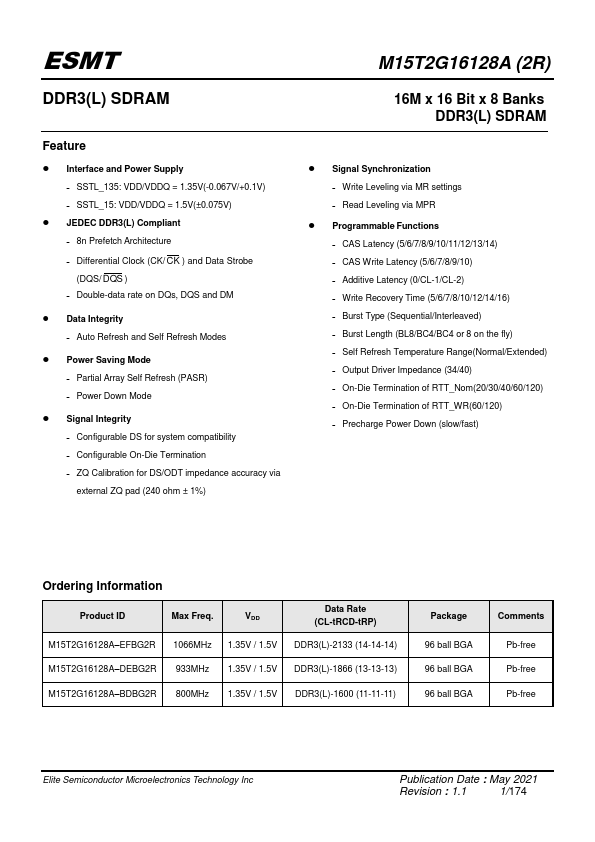 The 2Gb Double-Data-Rate-3 (DDR3(L)) DRAM is double data rate architecture to achieve high-speed operation.