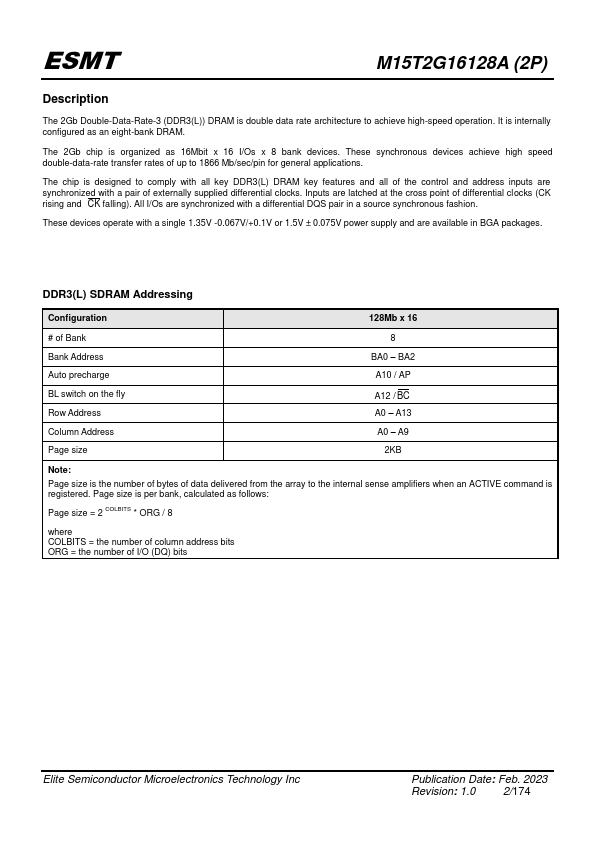 The 2Gb Double-Data-Rate-3 (DDR3(L)) DRAM is double data rate architecture to achieve high-speed operation.