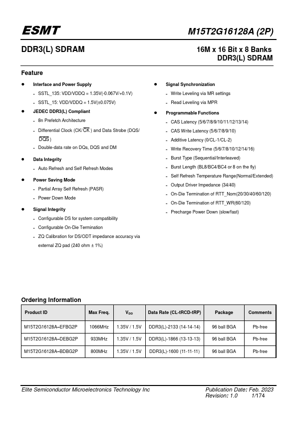 | Part number | M15T2G16128A-EFBG2P |