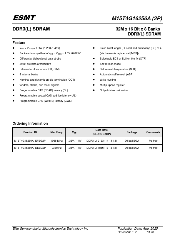 | Manufacturer | ESMT (Elite Semiconductor Microelectronics Technology) |