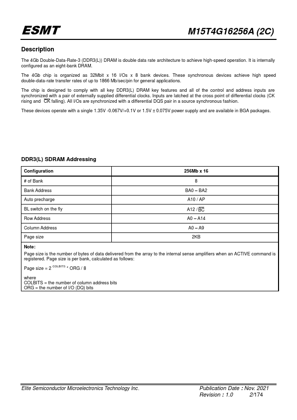| Description | 32M x 16 Bit x 8 Banks DDR3 SDRAM |