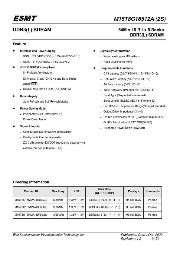 | M15T1G1664A | 8M x 16 Bit x 8 Banks DDR3 SDRAM |