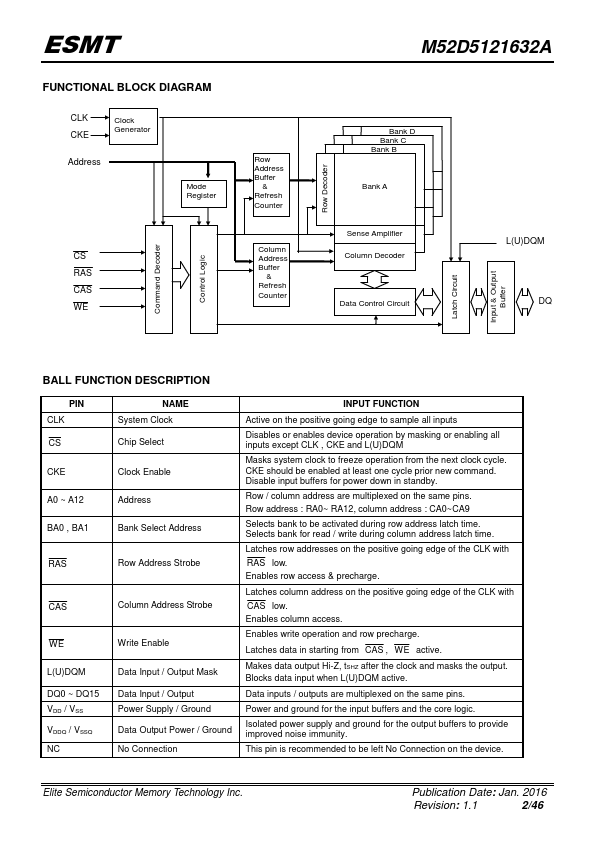 | M52D5121632A | 8M x 16 Bit x 4 Banks Mobile SDRAM |