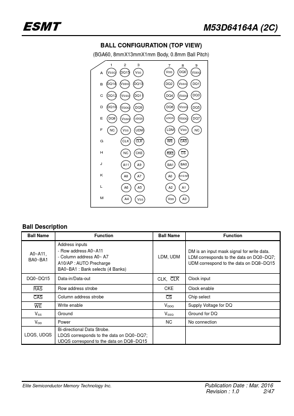 | Description | 1M x16 Bit x 4 Banks Mobile DDR SDRAM |
