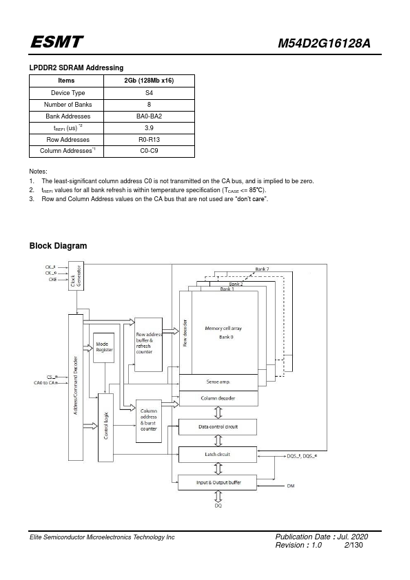 | Description | 16M x 16 Bit x 8 Banks LPDDR2 SDRAM |