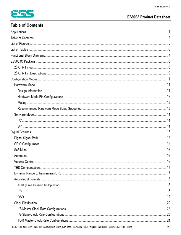 Using ESS’ patented HyperStream ® II architecture, the Sabre ES9033 delivers studio quality audio with 122dB DNR (w / DRE) and -108dB THD+N.