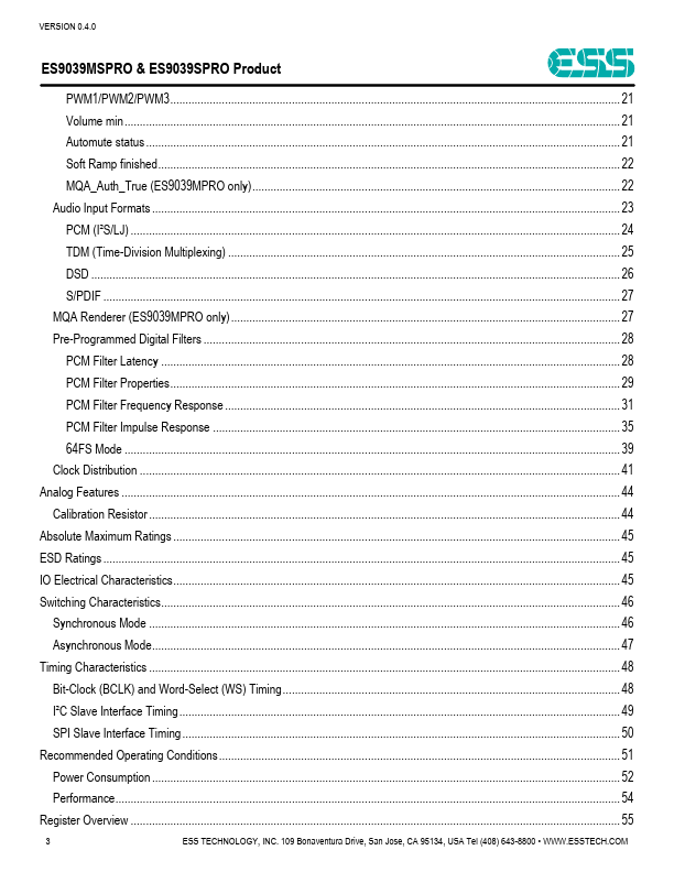 Download the ES9039SPRO datasheet PDF. This datasheet also covers the ES9039MSPRO variant, as both devices belong to the same 32-bit high-performance 8-channel dac family and are provided as variant models within a single manufacturer datasheet.