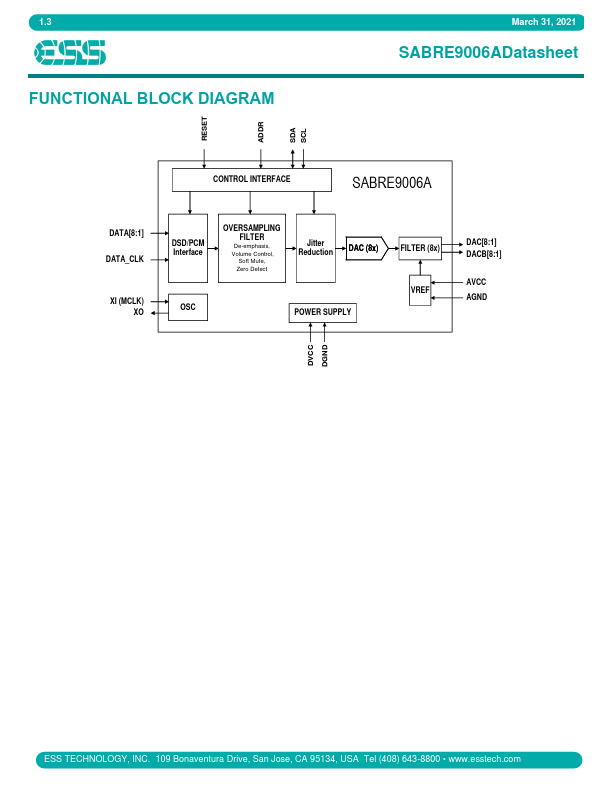 Analog Reinvented SABRE9006A Premier8-Channel Audio DAC Datasheet OVERVIEW The Sabre Premier (SABRE9006A) High Performance Audio DAC is a 24-Bit, 8-channel audio DAC that brings professional, digital audio quality to the consumer home entertainment market.