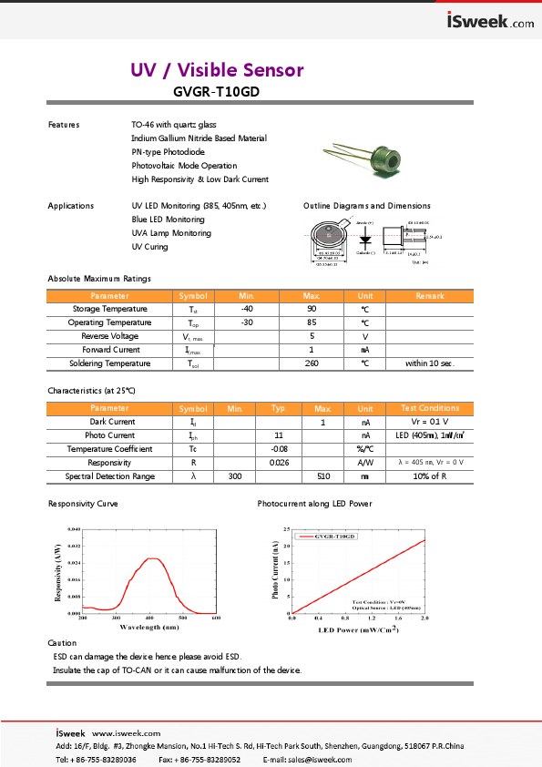 UV / Visible Sensor GVGR-T10GD.