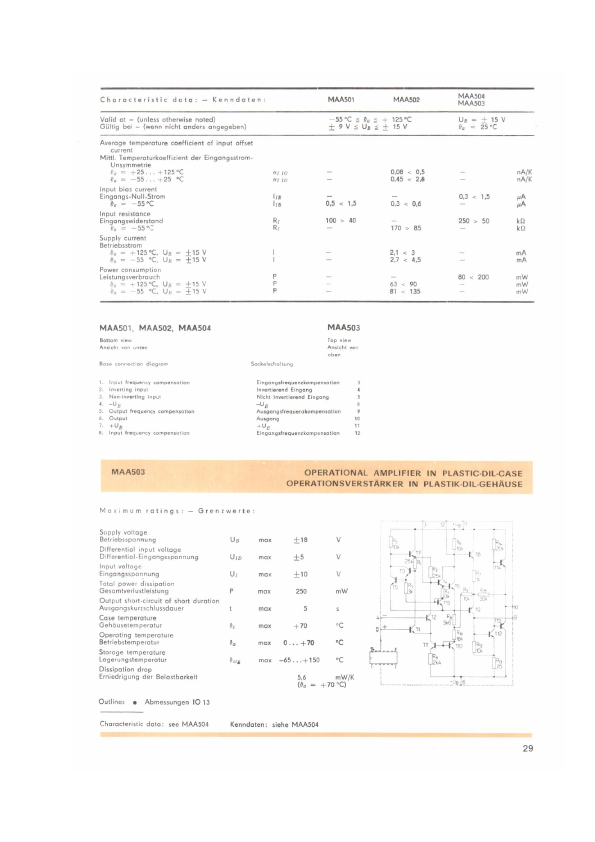 This page provides the datasheet information for the MAA503, a member of the MAA501 Operational Amplifiers family.