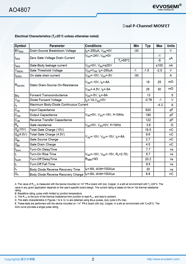 | AO4807 | 30V Dual P-Channel MOSFET | Alpha & Omega Semiconductors |