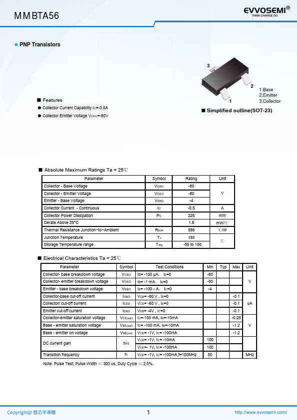 | Datasheet | MMBTA56-EVVOSEMI.pdf |
