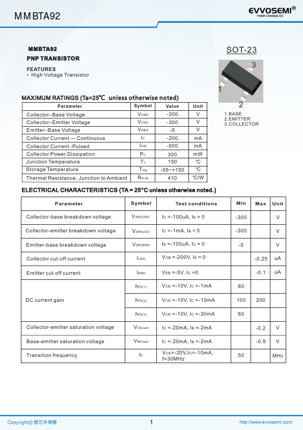 | Datasheet | MMBTA92-EVVOSEMI.pdf |