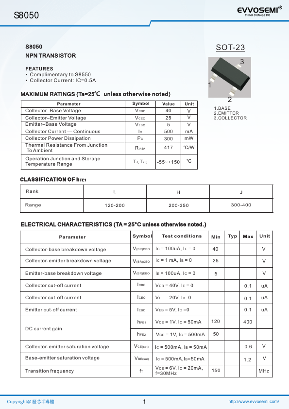 | Part number | S8050 |