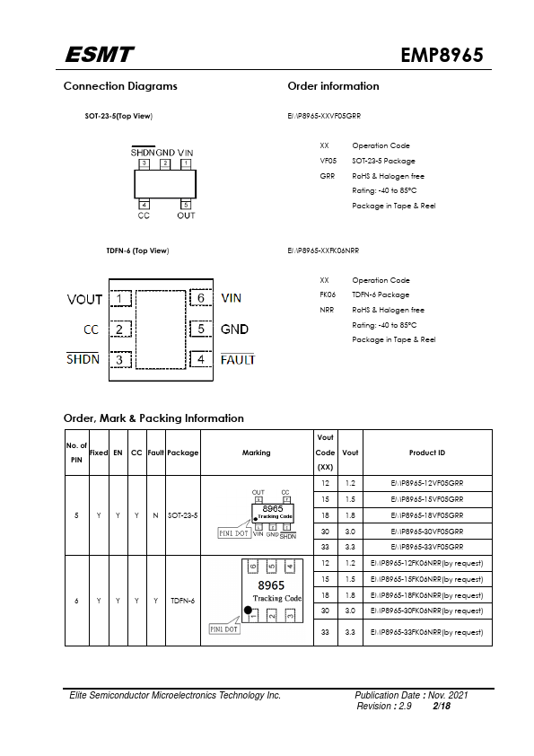 EMP8965 datasheet by ESMT (Elite Semiconductor Microelectronics Technology).