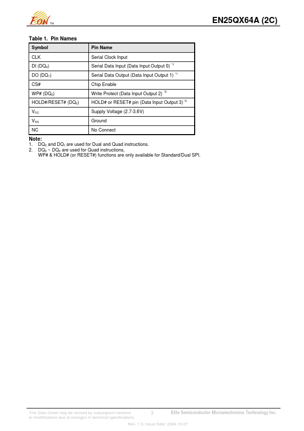 - Dual SPI: CLK, CS#, DQ0, DQ1, WP#