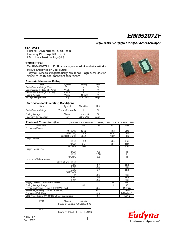 - The EMM5207ZF is a Ku-Band voltage controlled oscillator with dual