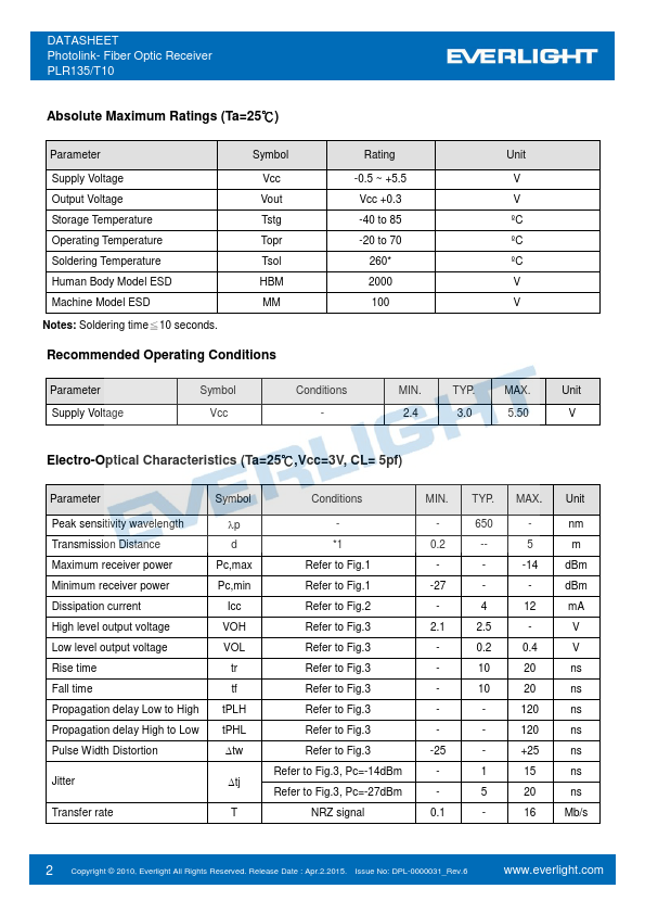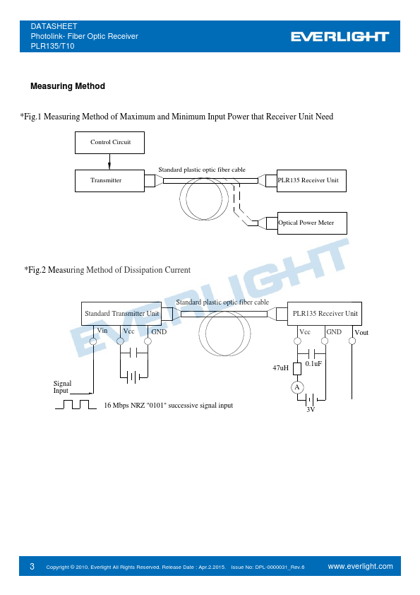 The optical receiver is packaged with custom optic data link interface, integrated on a proprietary CMOS PDIC process. Digital Optical Data-Link Dolby AC-3 Digital Audio Interface 1 Copyright © 2010, Everlight All Rights Reserved.Release Date : April.2.2015 Issue No: D