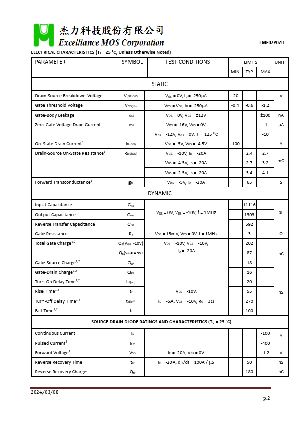 | Description | P-Channel Logic Level Enhancement Mode Field Effect Transistor |